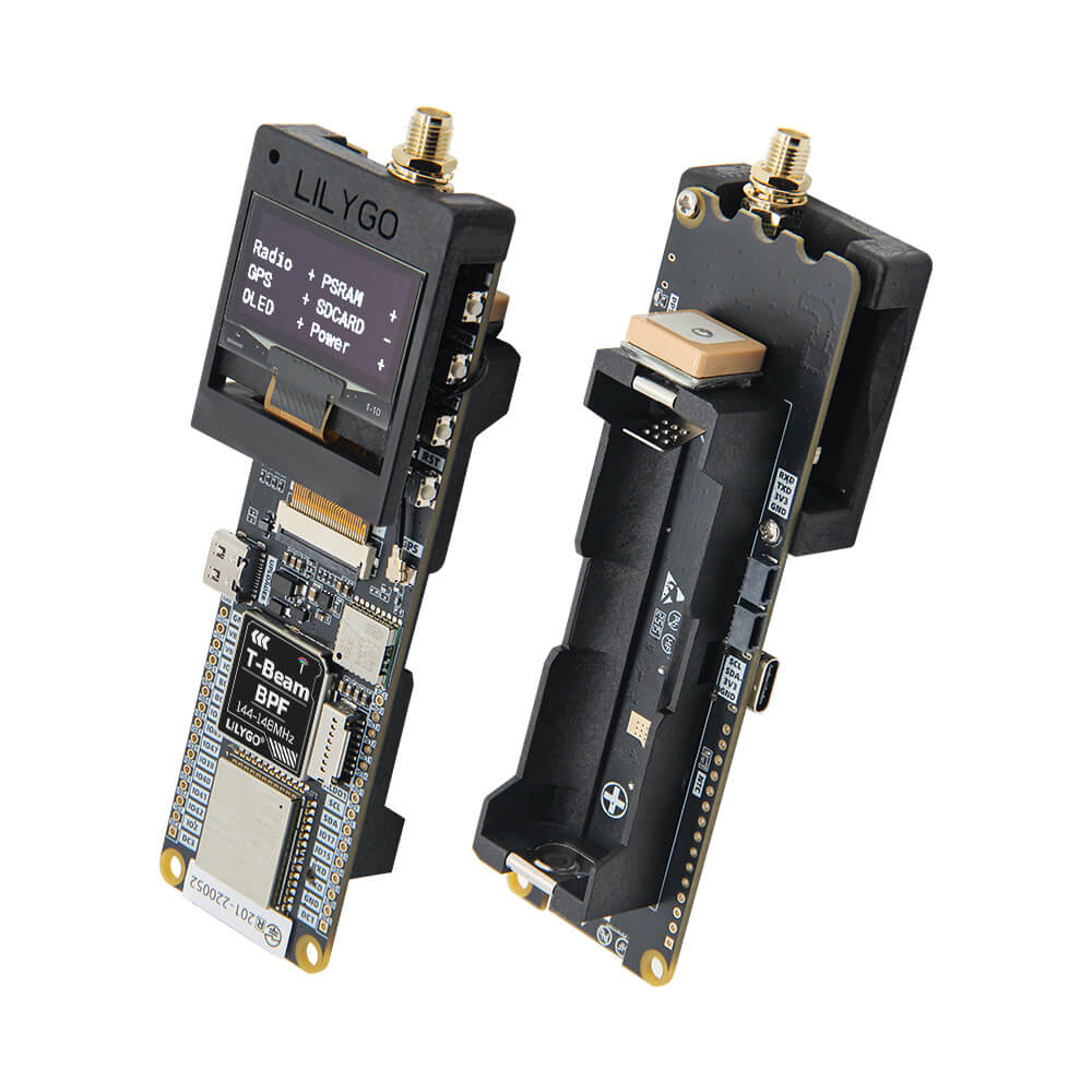 The LILYGO T-Beam BPF is a specialized variant of the popular T-Beam series, designed specifically for VHF amateur radio enthusiasts. It operates in the 144-148 MHz frequency band using the SX1278 LoRa radio module, paired with an integrated Band Pass Filter (BPF) to improve receiver selectivity and reduce interference from out-of-band signals.