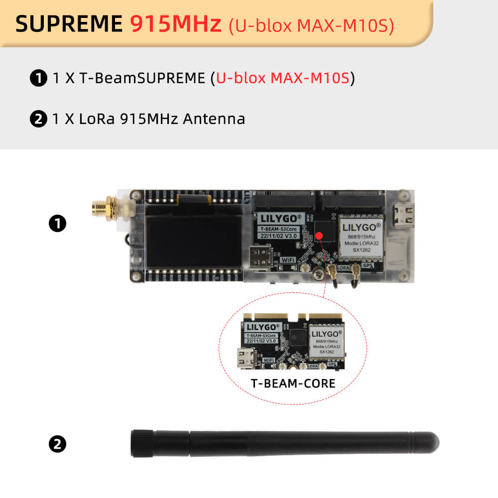 The LILYGO T-Beam Supreme is the flagship member of the T-Beam family, offering extensive frequency band support and GPS module options in a single platform. It supports LoRa communication across 433 MHz, 144-148 MHz (amateur radio), 868 MHz (Europe), 915 MHz (Americas), and 920 MHz (Asia-Pacific) bands, enabling global deployment flexibility.