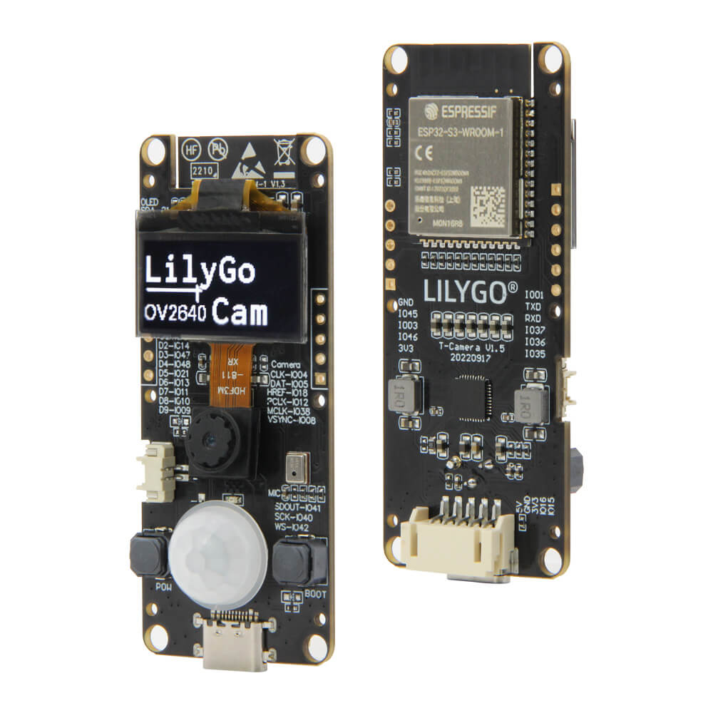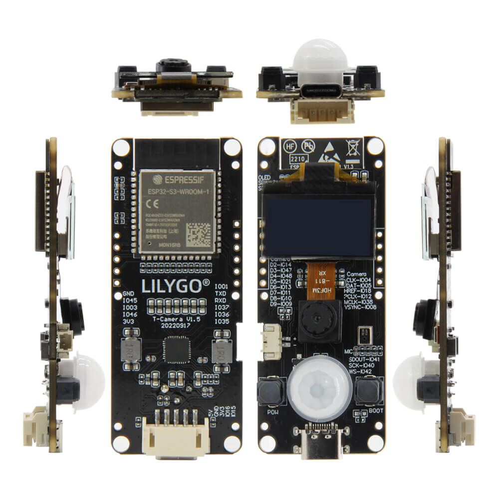 The LILYGO T-Camera S3 is an ESP32-S3 camera development board that builds on the proven ESP32-CAM concept with the more powerful S3 chip. It combines an OV2640 (2MP) or OV5640 (5MP) image sensor with a 0.96-inch SSD1306 OLED display on a single board, offering both image capture and local display output.