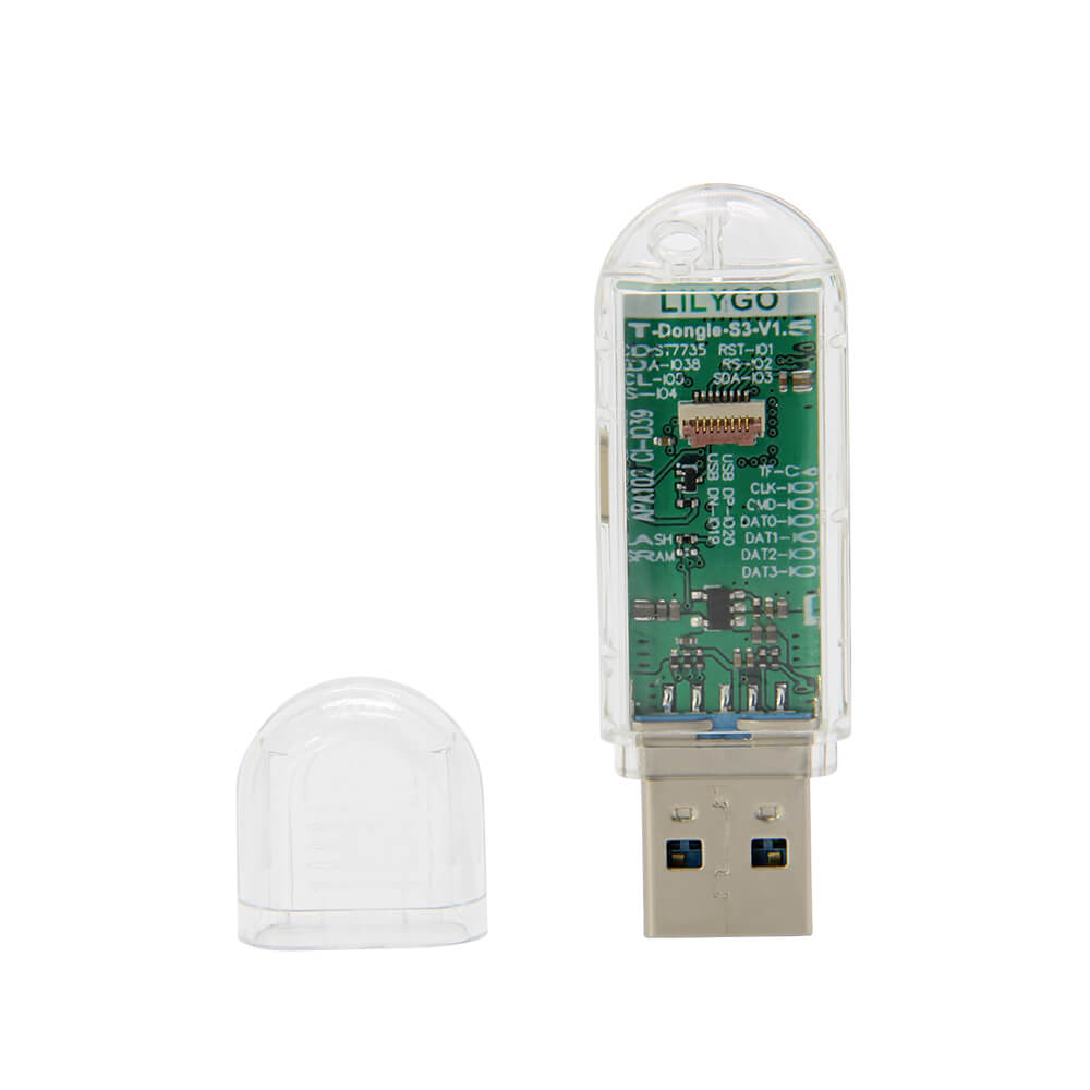 The LILYGO T-Dongle S3 is a USB stick form-factor development board built on the ESP32-S3. Its compact dongle shape allows it to plug directly into USB-A ports, making it suitable for embedded applications that need wireless connectivity without a separate power supply or cable.