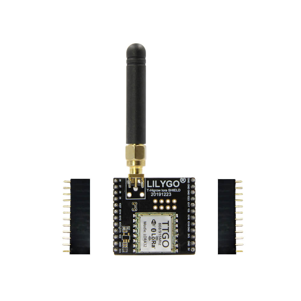 The LILYGO T-HiGrow LoRa Shield is a LoRaWAN function expansion board designed to add long-range wireless connectivity to the T-HiGrow plant monitoring platform. The shield plugs into the T-HiGrow board and adds either 868MHz (European) or 915MHz (North American) LoRa radio capability, enabling sensor data to be transmitted to The Things Network (TTN) and visualized on platforms like Cayenne.