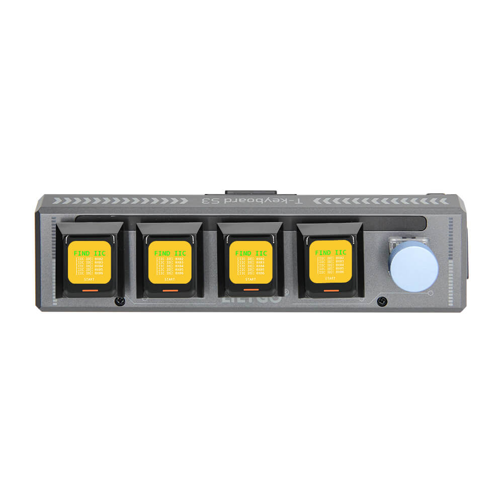 Compatible with Arduino IDE and ESP-IDF. The GitHub repository at github.com/Xinyuan-LilyGO/T-Keyboard-S3-Pro provides display rendering examples, I2C expansion examples, WS2812 LED control, and BLE HID keyboard examples.