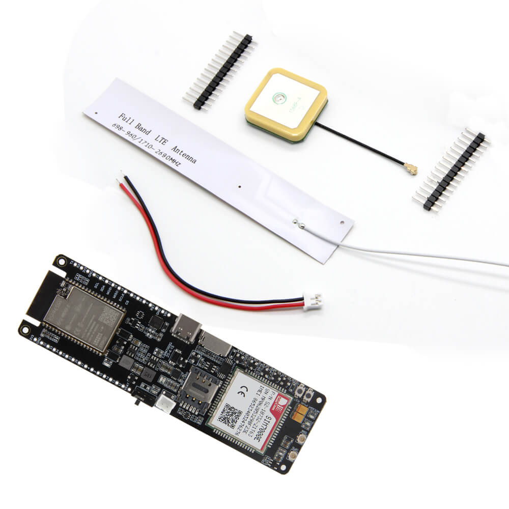 The TinyGSM library provides a simple, modem-agnostic API for TCP/UDP, HTTP/HTTPS, MQTT, and SMS communication through the SIM7000E. The board is functionally very similar to the T-SIM7000G but uses the European band configuration of the SIM7000E modem instead of the global SIM7000G. Both LTE and GPS antennas are included in the package.
