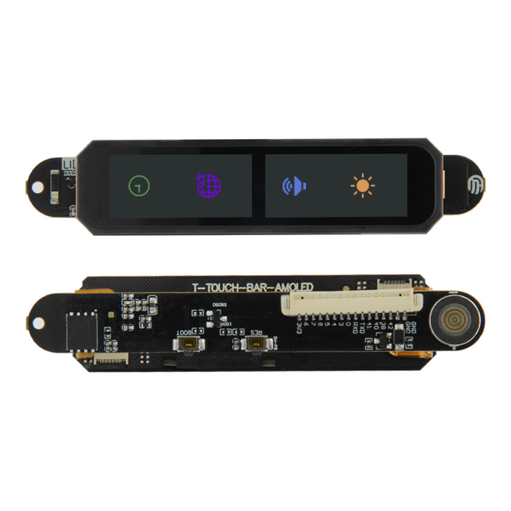 The LILYGO T-Touch Bar is a compact ESP32-S3R8-based development board presented in a sleek bar form factor with an integrated touchscreen display. It comes in two display variants: a standard LED version and a premium AMOLED version, catering to different application requirements and budget considerations.