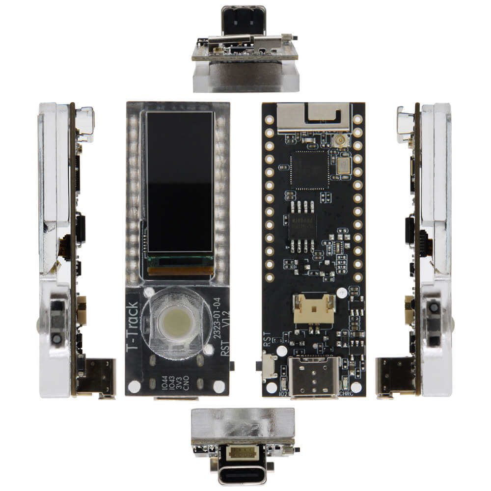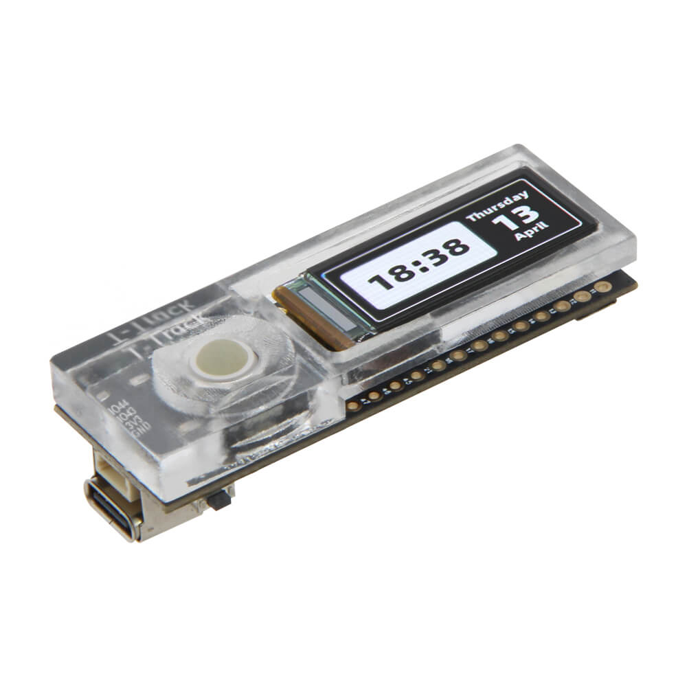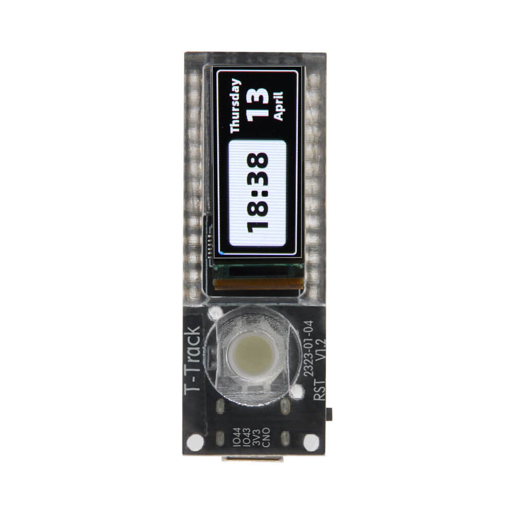 The T-Track is an ESP32-S3R8-based development board featuring a 1.1-inch AMOLED display and a trackball input device, designed for navigation and interactive IoT applications.